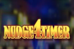 The Nudge4Timer slot machine is a nostalgic title inspired by classic casino slots of the past. It features a vibrant red game board with golden borders around the reels and buttons, set against a blurred casino background. The game board is well-crafted and clearly organized to keep players informed throughout the gameplay.